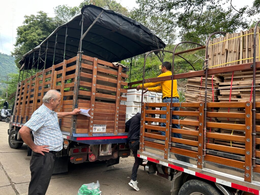 Durante la semana previa a las entregas, se distribuyeron todos los materiales de apicultura a los productores beneficiados, con la finalidad de agilizar la jornada y de que tengan todo listo en el sitio del apiario, para recibir los núcleos con abejas.